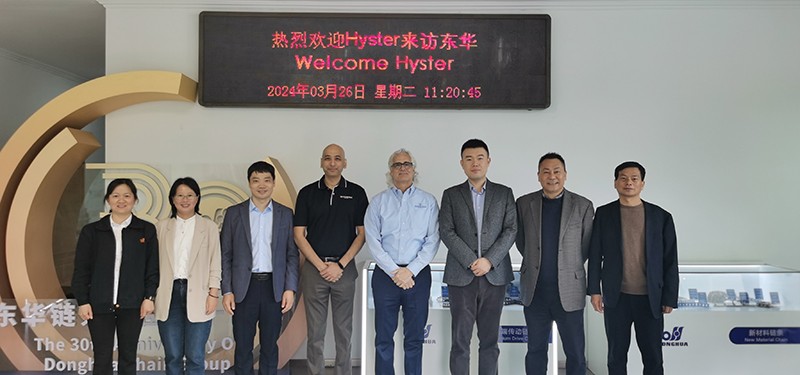 3月26日,Hyster全球供應(yīng)鏈副總裁Mark攜亞太區(qū)供應(yīng)總監(jiān)Muquarram、Hyster富陽(yáng)工廠采購(gòu)總監(jiān)到訪東華,集團(tuán)董事長(zhǎng)宣成攜國(guó)際市場(chǎng)部總經(jīng)理張秉忠、板式鏈?zhǔn)聵I(yè)部總經(jīng)理李奎林等接待。