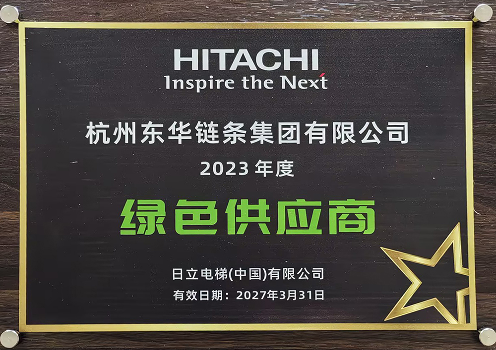 5月13日,在日立電梯(中國)有限公司總部年度供應商大會上,東華鏈條獲“2023年度綠色供應商”稱號,以表彰東華在日立電梯供貨過程中堅持從設計、采購、生產、售后等產品全生命周期倡導“綠色制造”理念。2023年,日立電梯(中國)有限公司結合其供應商管理《綠色供應商評選指南》,對東華鏈條現(xiàn)場環(huán)境監(jiān)察,認為東華鏈條在雙方多年的合作中非常重視環(huán)境管理,具有完整的環(huán)境管理制度,有效減少廢水、廢氣、廢物排放,現(xiàn)場供貨環(huán)境管理合法、合規(guī),決定授予東華“2023年度綠色供應商”稱號。